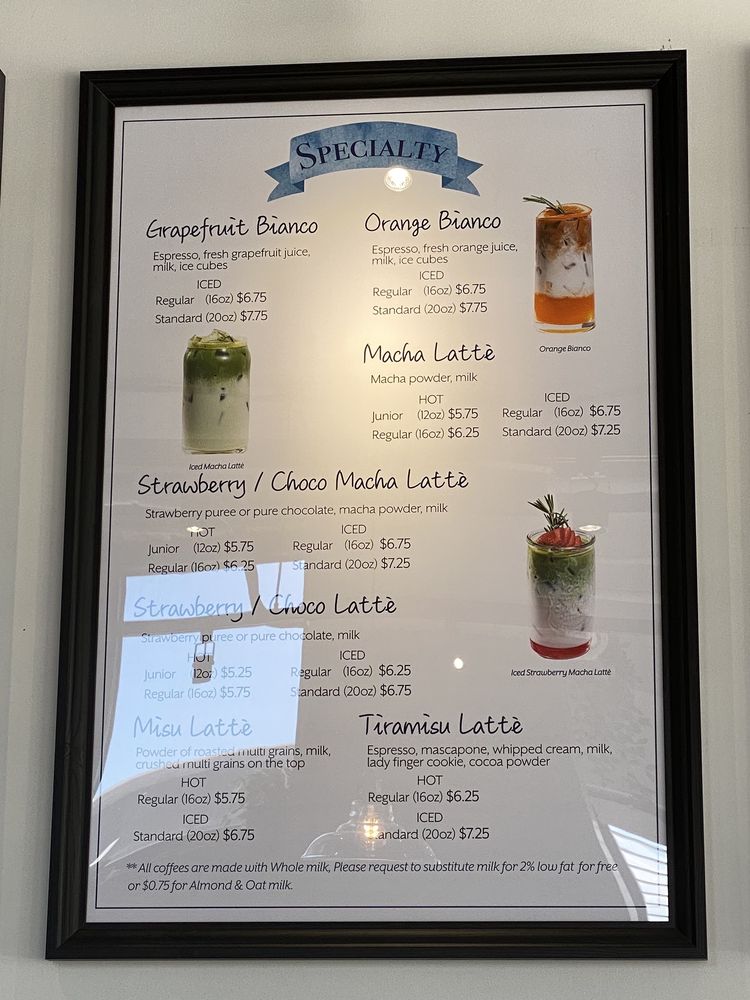 Introducing the menu at 18.5 Gram Coffee, a cozy cafe in Flushing, NY, offering a delightful selection of desserts, coffee, tea, and sandwiches. With a 5/5 rating for ambiance and service, customers are drawn to the comfortable environment, cute decor, and friendly staff. Highlights include the generous portions such as the spicy tuna avocado sandwich and the delicious drinks like the strawberry matcha latte and hot misu latte. The menu also features unique items like the orange Bianca, showcasing the cafe's creativity in beverage offerings. With fast internet, ample seating, and a welcoming atmosphere, 18.5 Gram Coffee is a top spot for studying or simply enjoying a tasty treat. Visit this cafe for a memorable experience filled with tasty treats, friendly service, and a cozy ambiance.